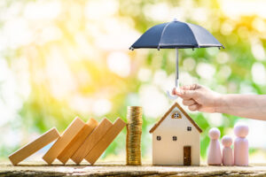 Collect gold coin and woman hand hold open the black umbrella fo
